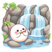 Stay comfy and chill with a tune! This hoodie features a bouncy ball creature playing its flute by a waterfall.